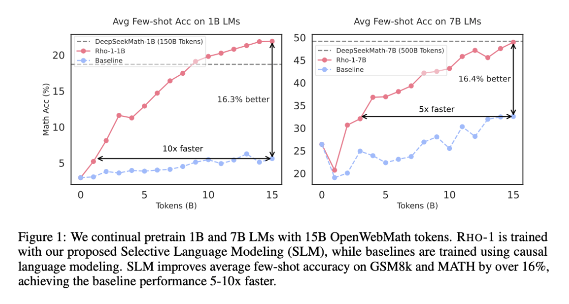 LLMs continued to be a focal point at NeurIPS 2024. Researchers presented novel techniques for improving LLM performance, efficiency, and safety. One notable trend was the exploration of selective token prediction for pre-training. The paper "Not All Tokens Are What You Need for Pretraining" introduced the Rho-1 language model, which focuses on predicting only the most informative tokens during training. This approach, called Selective Language Modeling (SLM), involves scoring tokens using a reference model and training the language model with a focused loss on tokens with higher scores. By selectively training on useful tokens, Rho-1 boosts accuracy and general performance. For example, when continually pre-trained on 15B OpenWebMath corpus, Rho-1 yields an absolute improvement in few-shot accuracy of up to 30% in 9 math tasks. This demonstrates the potential for more data-efficient LLM training.